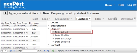 You can select functions to be performed on the grouped data within an aggregate report. These functions are displayed as columns in your aggregate report.