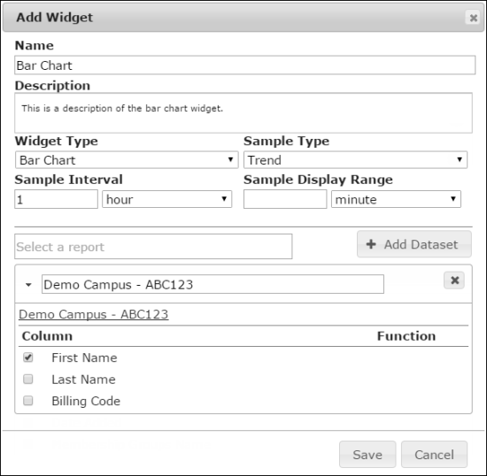 Option 2: Trend: On the dashboard, the bar chart is displayed based on samples of the report taken at the trend interval.