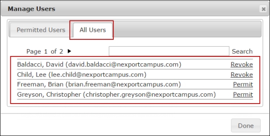 You can view the list of all users who you would need to give access to a dashboard in your own organization or its descendants. You can also search for a user.