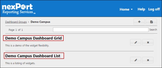 The Dashboards Groups page is displayed.